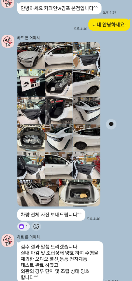 아래 사진처럼 실시간으로 작업 진행과정 및 내용을 상세하게 사진과 함깨 보내주십니다.