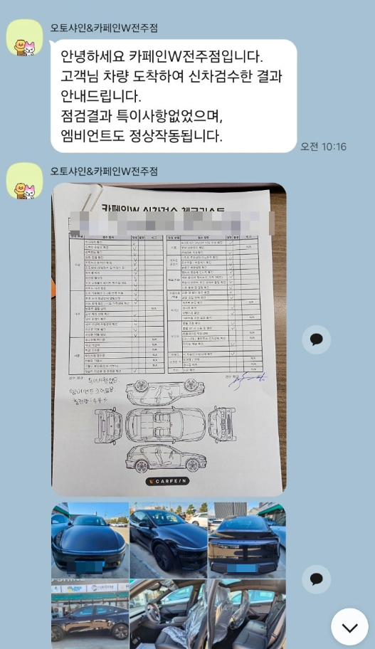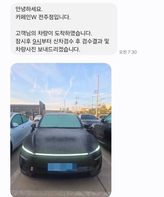 그리고 탁송받자마자 차량 상태도 그냥 넘기지 않고 꼼꼼하게 봐주시면서 특이사항이나 혹시 모를 불량 부분까지 체크해주신 점이 정말 인상 깊었습니다!