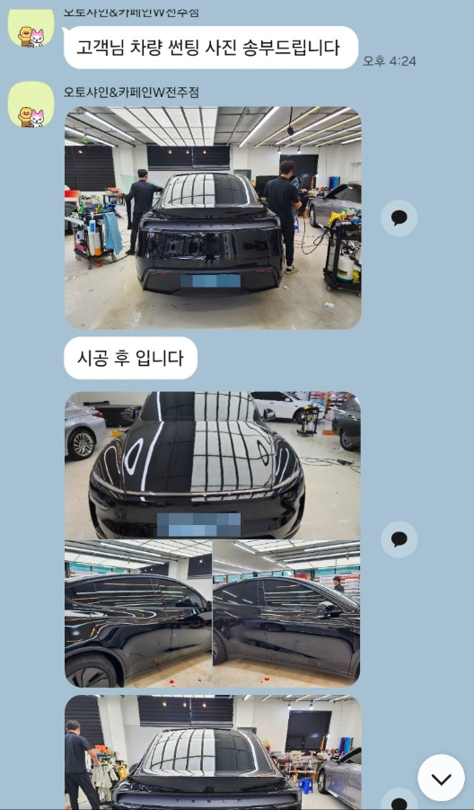 틴팅 맡길 곳 고민 많이 했는데 카페인w로 선택하길 정말 잘한 것 같아요 ! 작업이 정말 깔끔하게 잘 나왔어요.