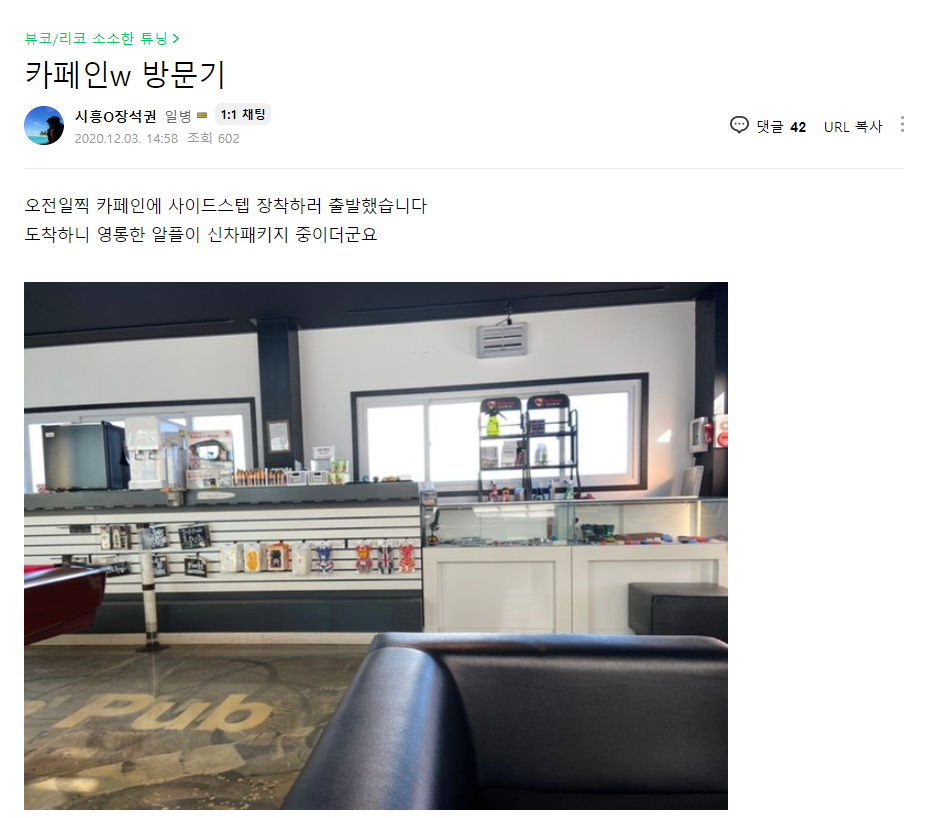 카페인W남부지점 오토트렁크 시공 대만족후기