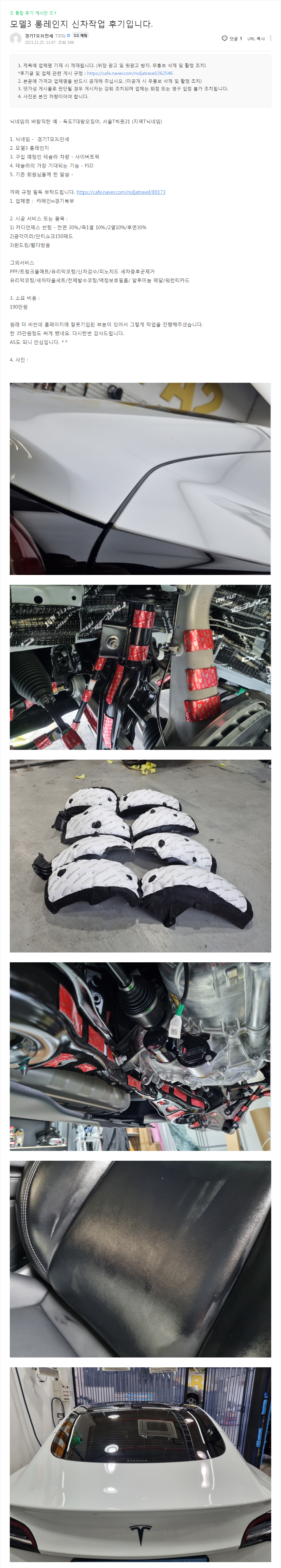 모델3 롱레인지 신차작업 후기입니다.