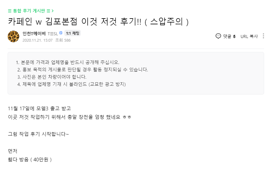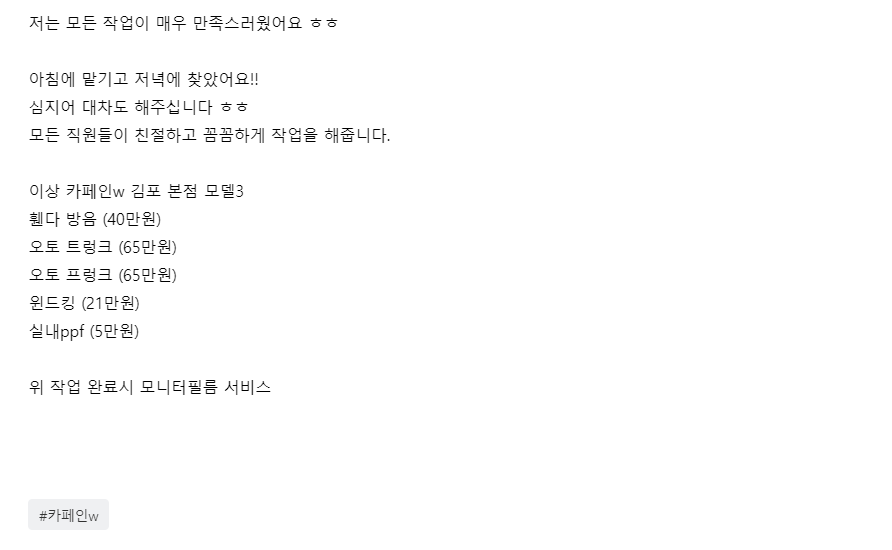 카페인w 북부지점 신차패키지 후기