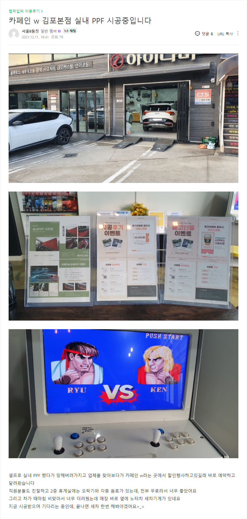 카페인 w 김포본점 실내 PPF 시공중입니다