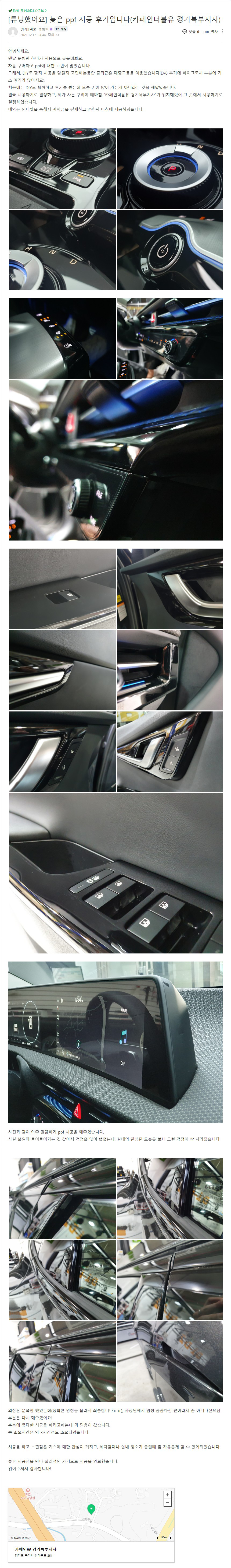 늦은 ppf 시공 후기입니다(카페인더블유 경기북부지사)