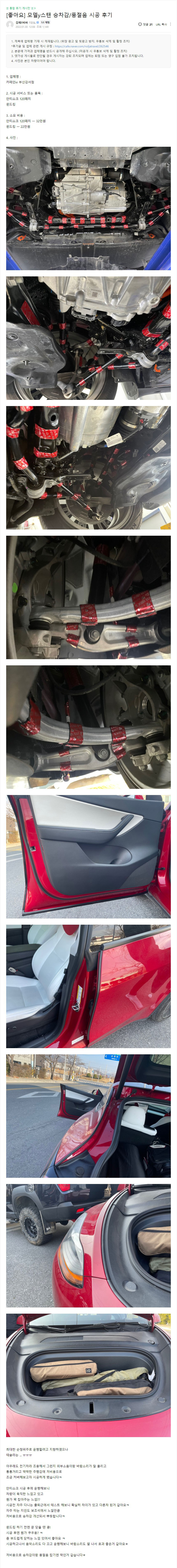 모델y스탠 승차감/풍절음 시공 후기