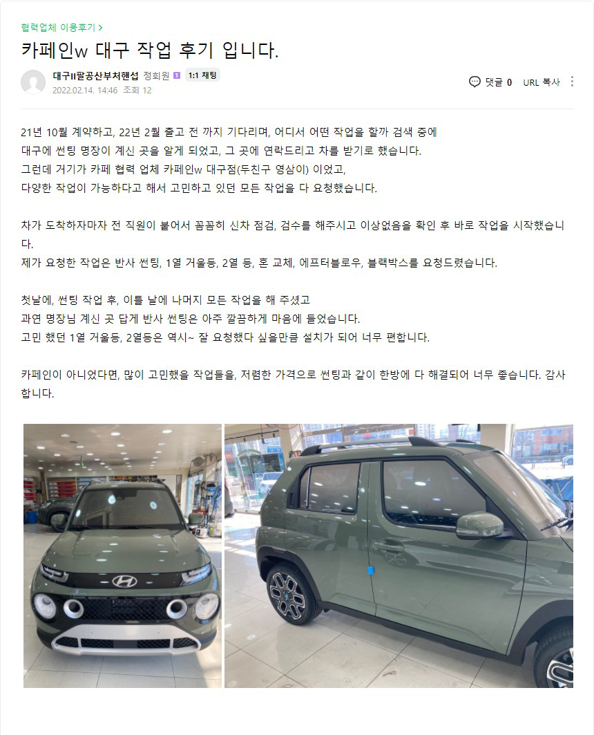 카페인w 대구 작업 후기 입니다.