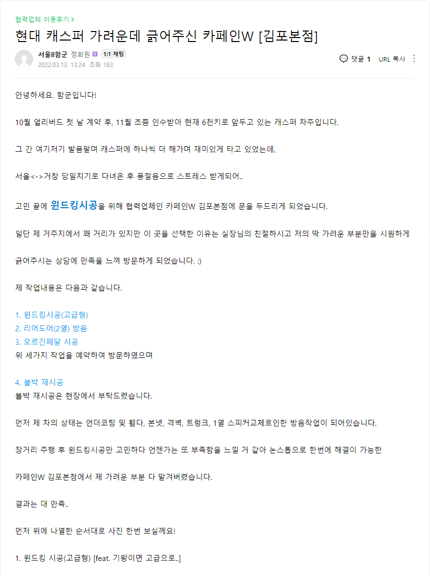 현대 캐스퍼 가려운데 긁어주신 카페인W [김포본점]
