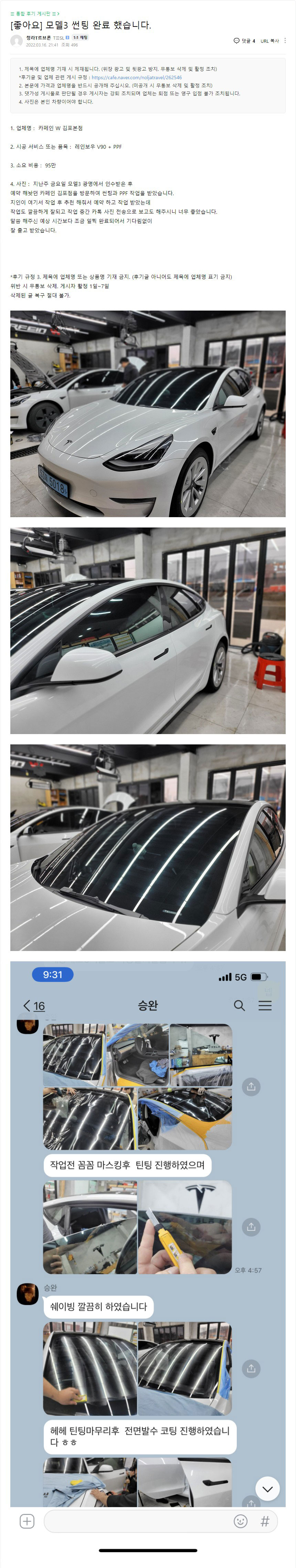 테슬라 카페인 w 시공 후기