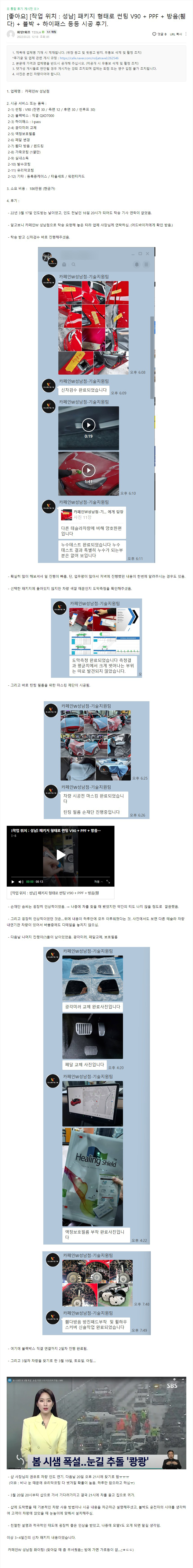 [좋아요] [작업 위치 : 성남] 패키지 형태로 썬팅 V90 + PPF + 방음(휀다) + 블박 + 하이패스 등등 시공 후기.