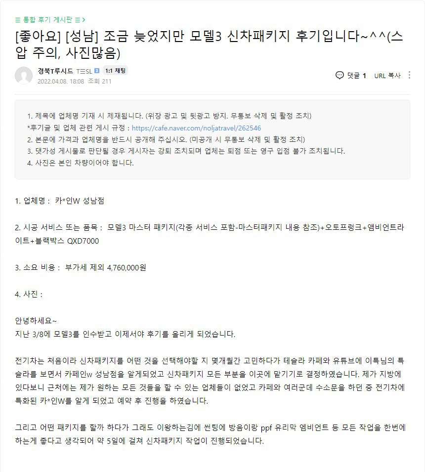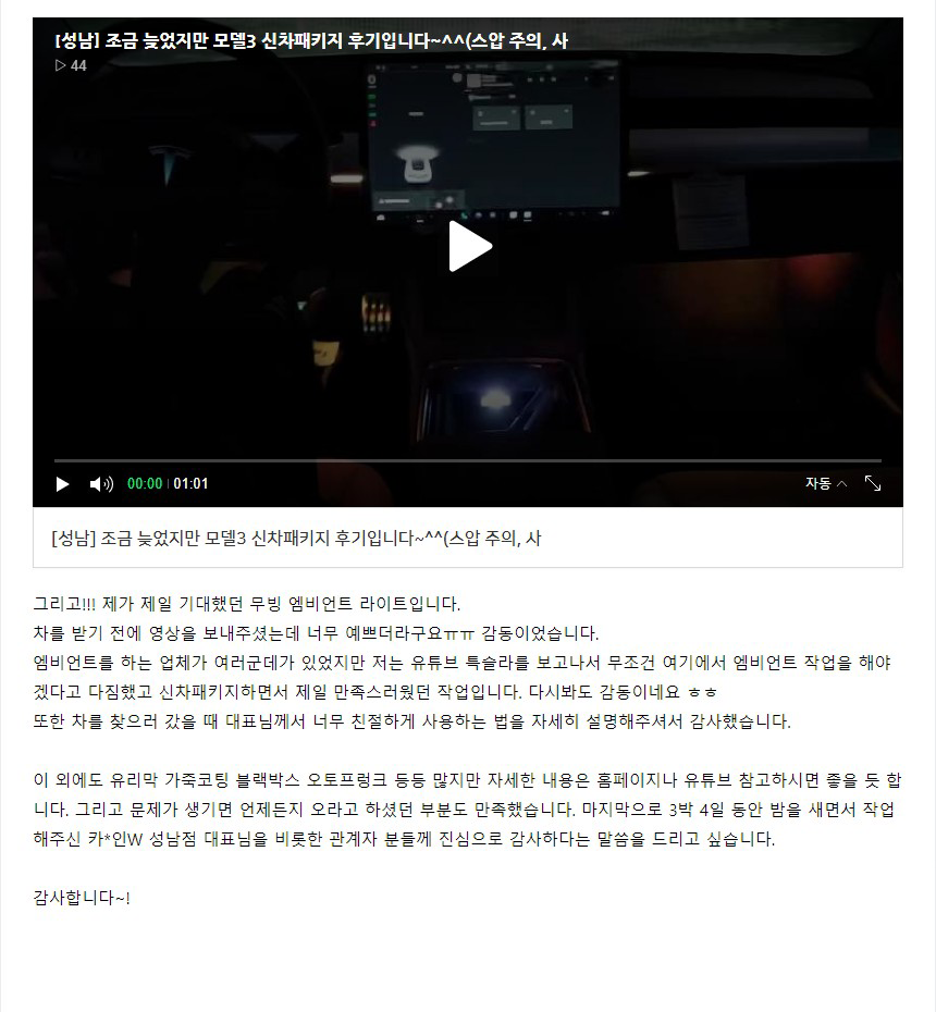 [좋아요] [성남] 조금 늦었지만 모델3 신차패키지 후기입니다~^^ (스압 주의, 사진많음)