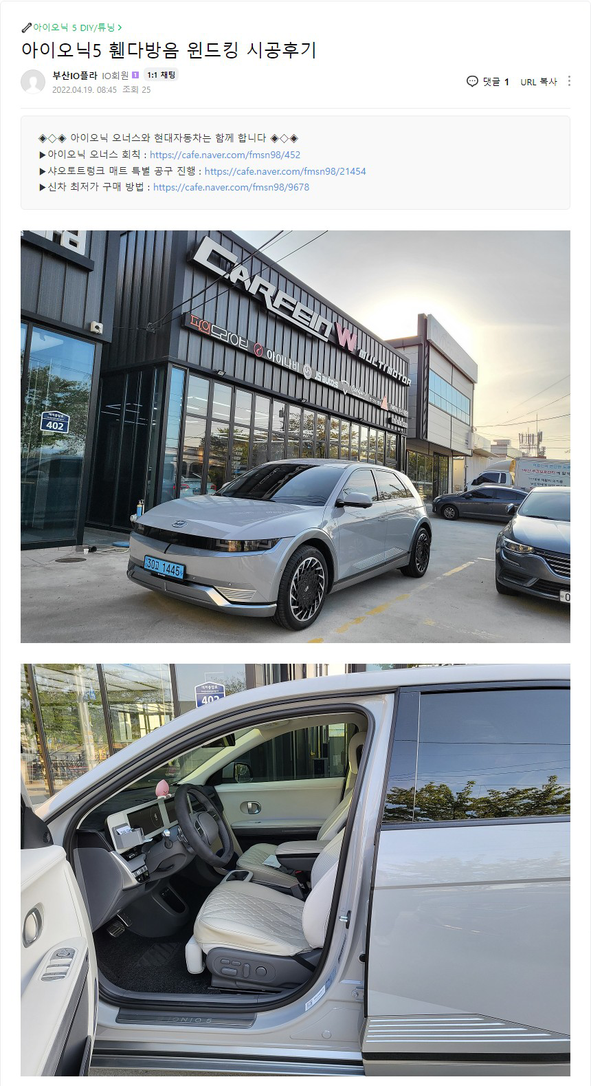 아이오닉5 휀다방음 윈드킹 시공후기