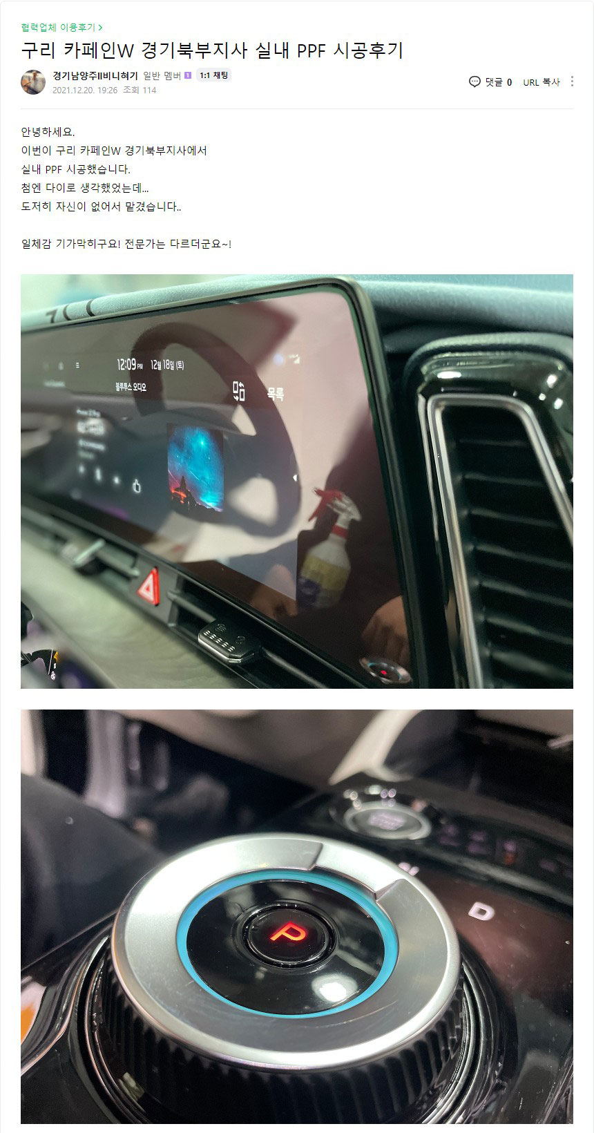 구리 카페인W 경기북부지사 실내 PPF 시공후기
