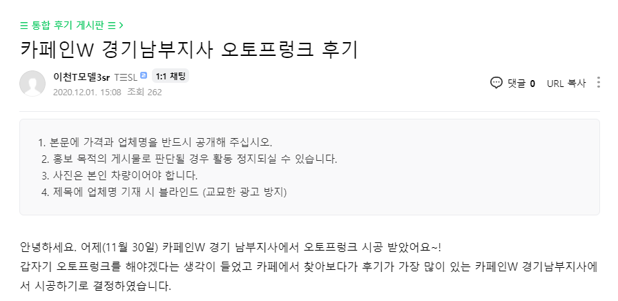 카페인W 경기남부지사 오토프렁크 후기
