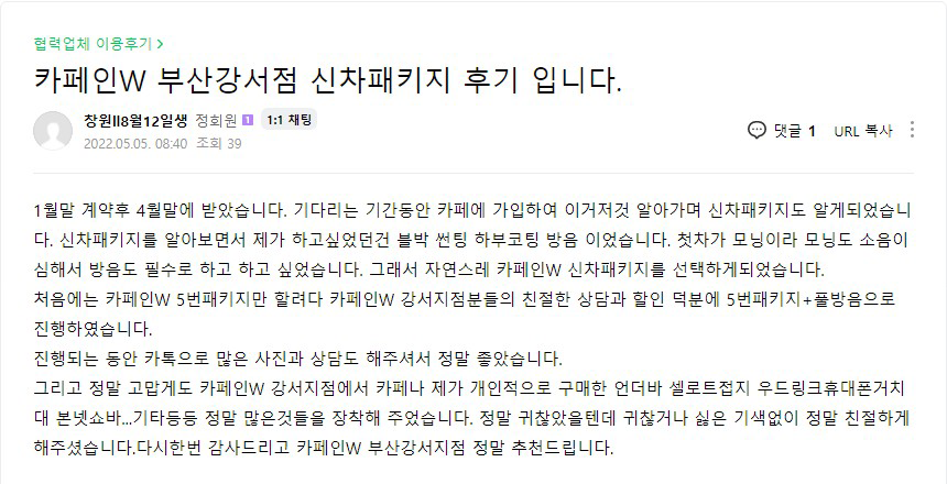 카페인W 부산강서점 신차패키지 후기 입니다.