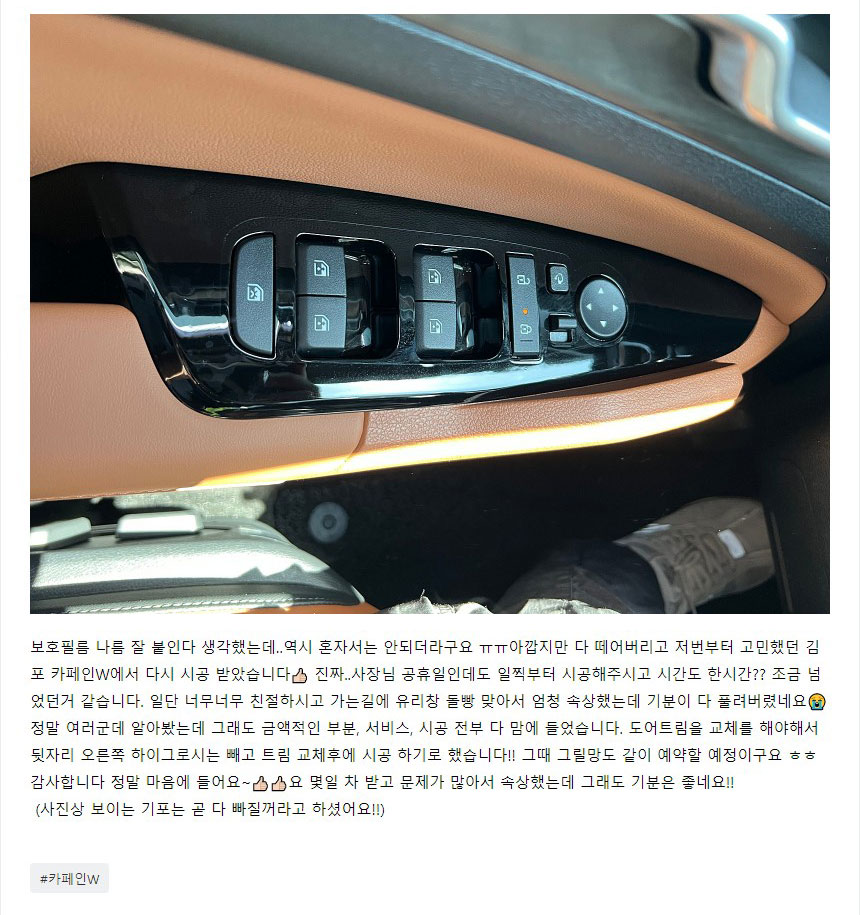혼자 실내PPF망하고 김포 카페인W에서 PPF시공받았습니다!!