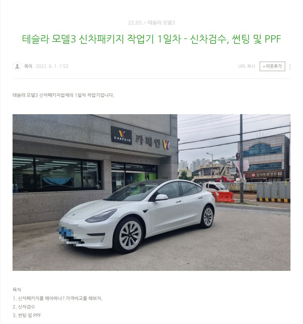 테슬라 모델3 신차패키지 작업기 1~3일차