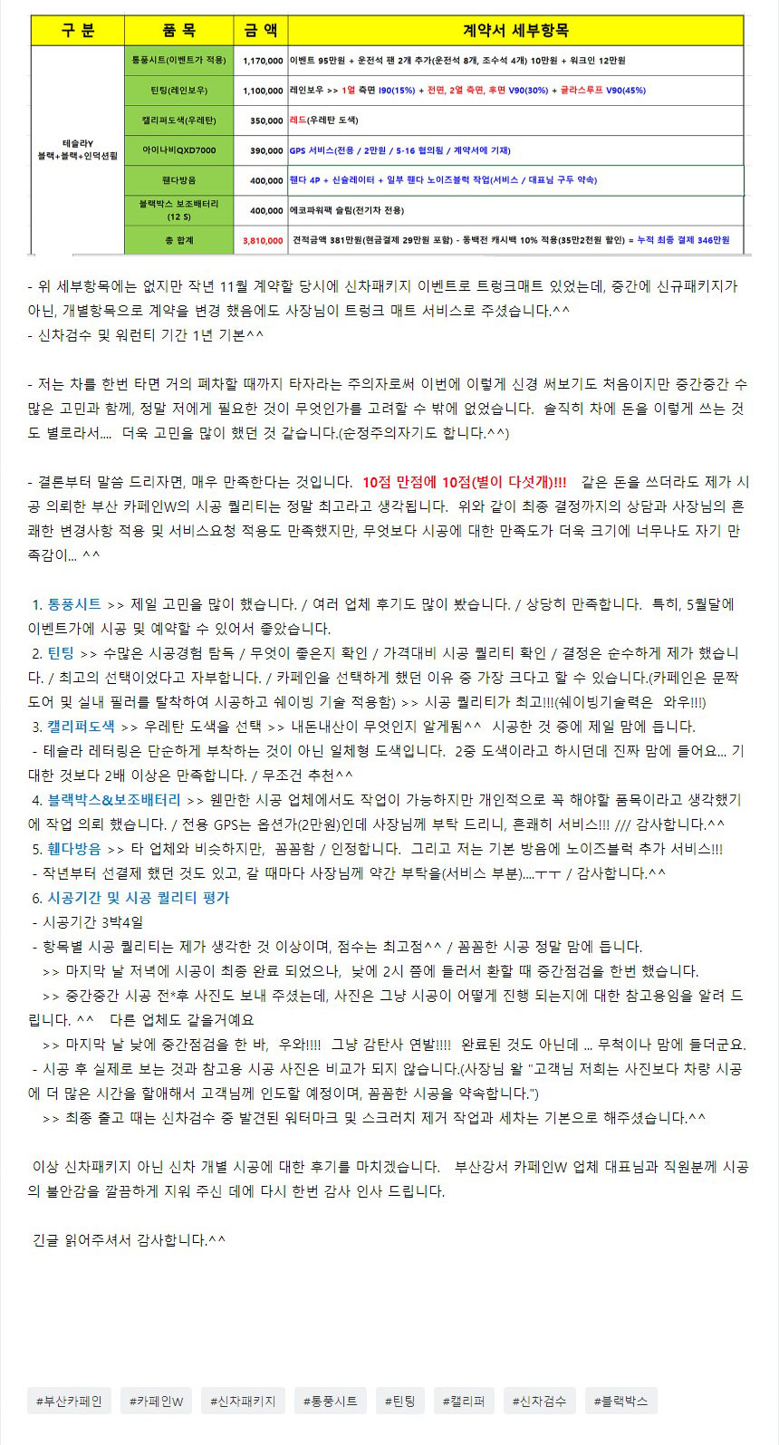 모델3 틴팅 후기