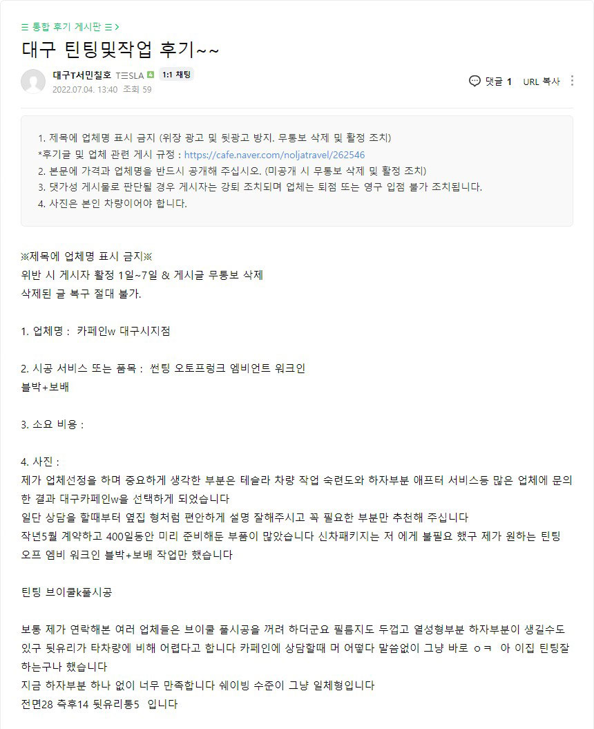 대구 틴팅및작업 후기~~