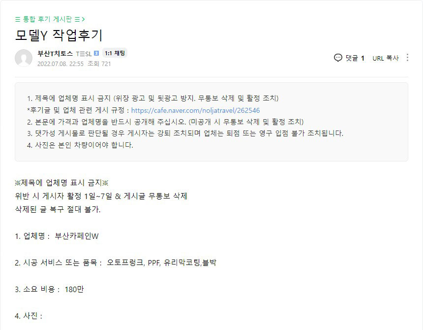대전에서 모델y 순정형 무빙엠비언트 작업 후기 5.