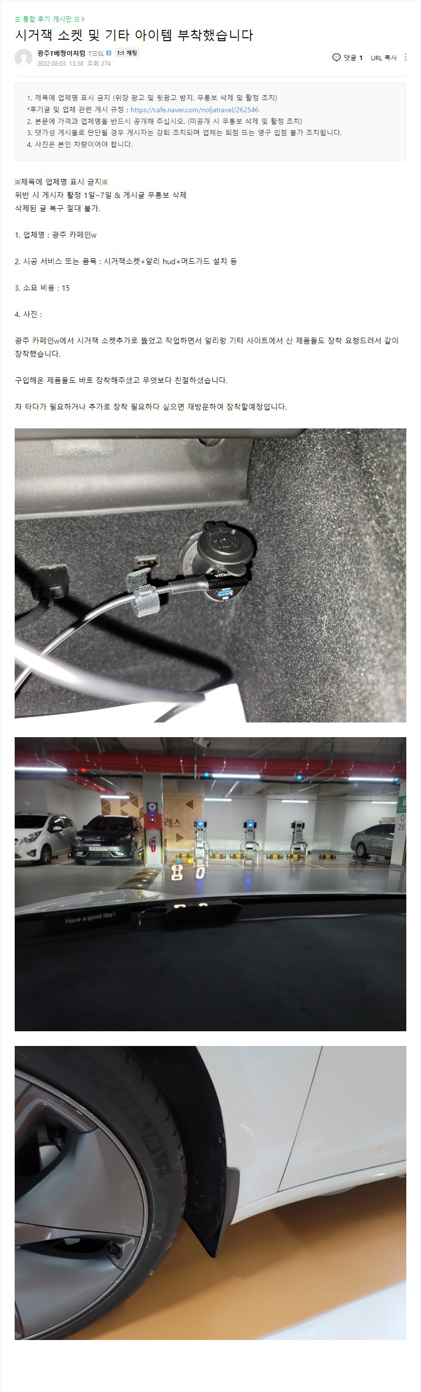 시거잭 소켓 및 기타 아이템 부착했습니다