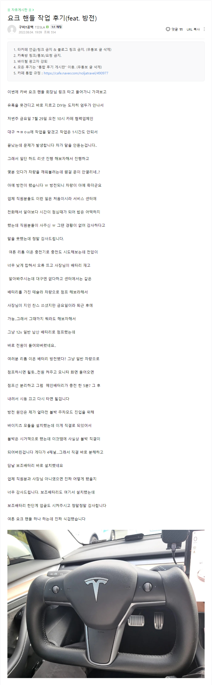모델3p 3년 주행 후 하부보강 및 휀다방음 후기