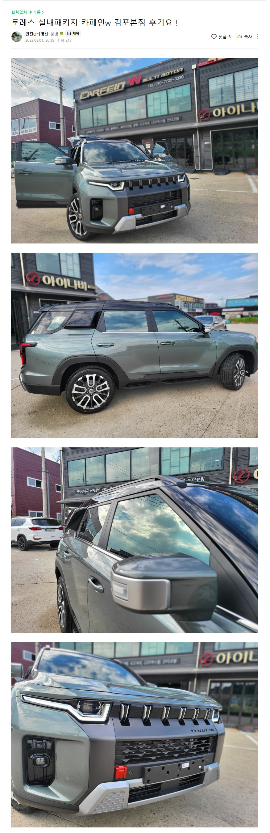 토레스 신차패키지 후기(카페인W 김포본점)