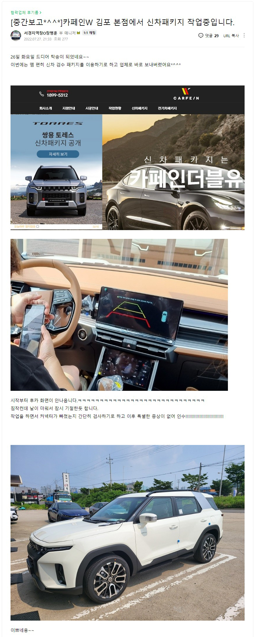 토레스 신차패키지 카페인W 김포본점 후기요!