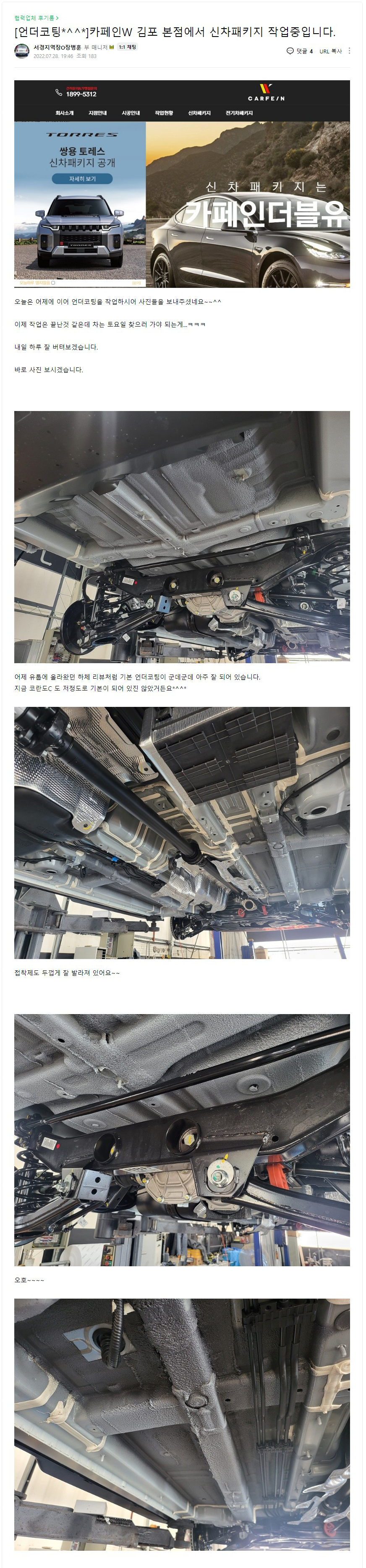 카페인W 김포 본점에서 신차패키지 작업중입니다.
