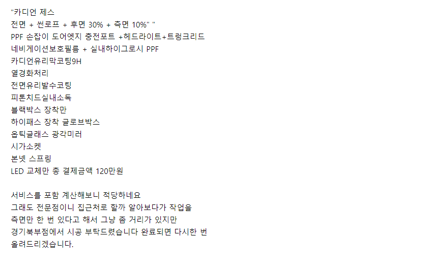 동탄 틴팅, 유리막코팅, 블박, 하이패스, 광각미러.. 후기