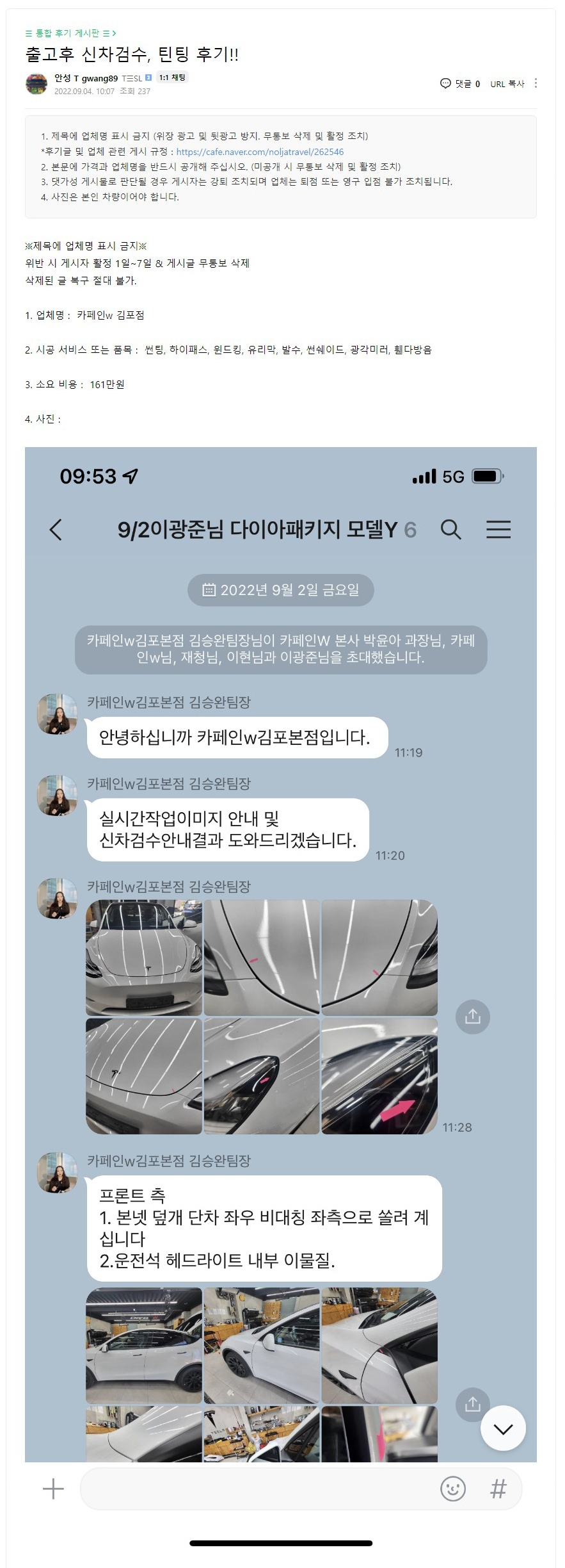 부산 모델Y 출고직후 썬팅 후기