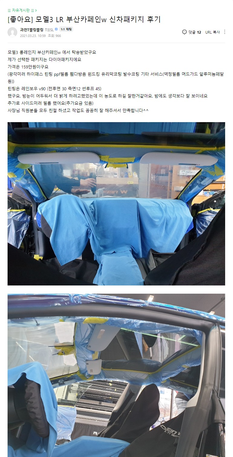 부산 카페인w 신차패키지 후기