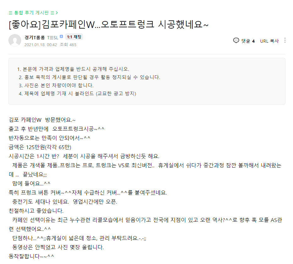 카페인w 경기남부점 오토프렁크, 오토트렁크 시공했습니다. 만족도 최고!