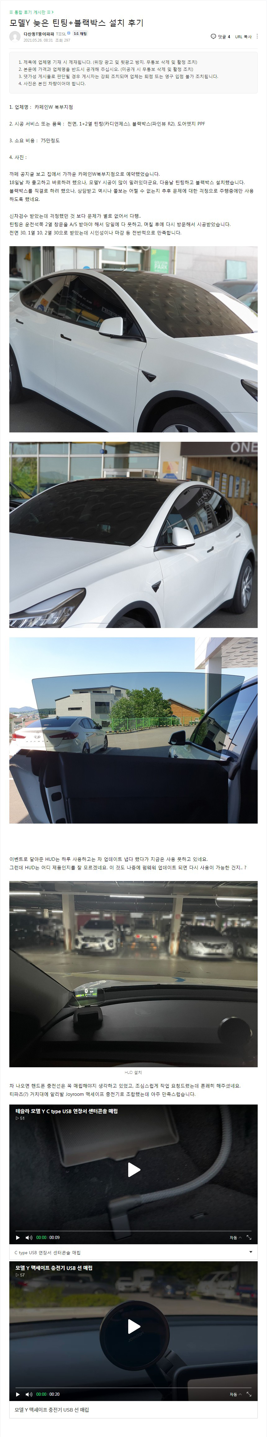 모델Y 늦은 틴팅+블랙박스 설치 후기