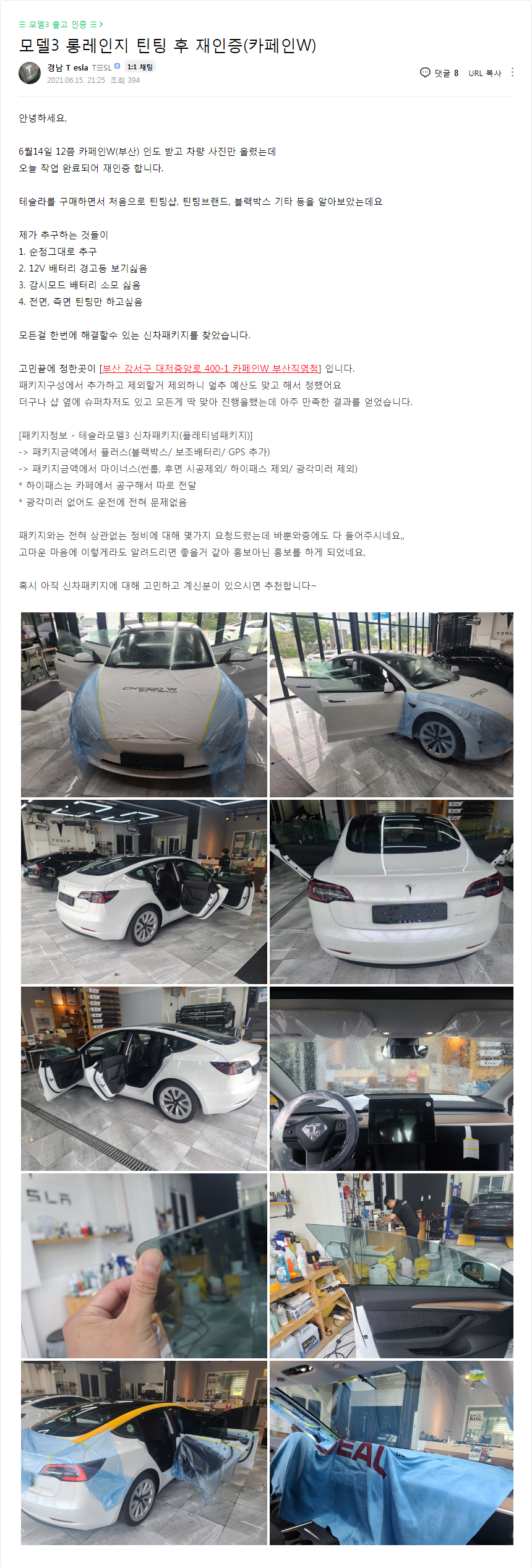 모델3 롱레인지 틴팅 후 재인증(카페인W)