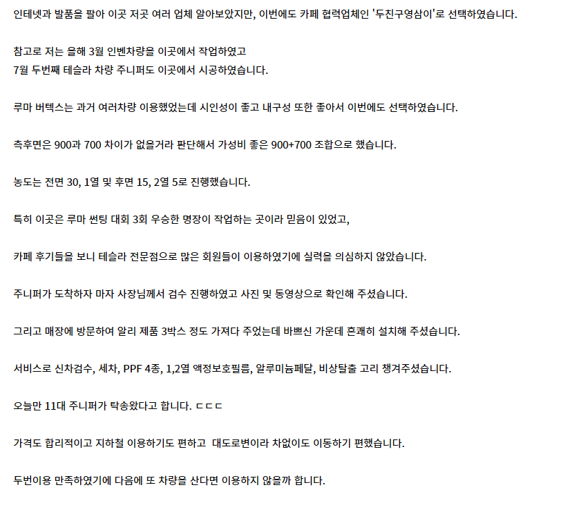 [두친구 영삼이] 대구 모델Y 주니퍼 틴팅 후기
