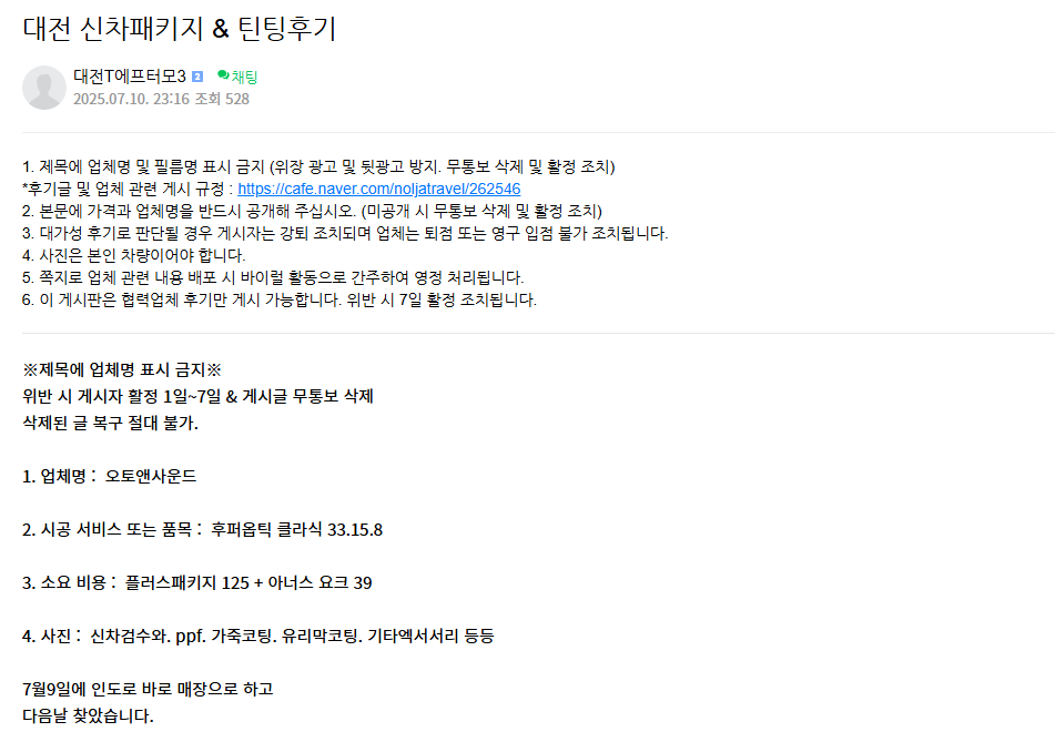 대전 신차패키지 & 틴팅 후기