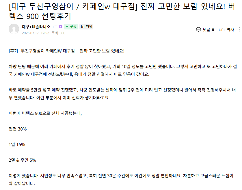 [대구 두친구영삼이 / 카페인w 대구점] 진짜 고민한 보람 있네요! 버텍스 900 썬팅후기