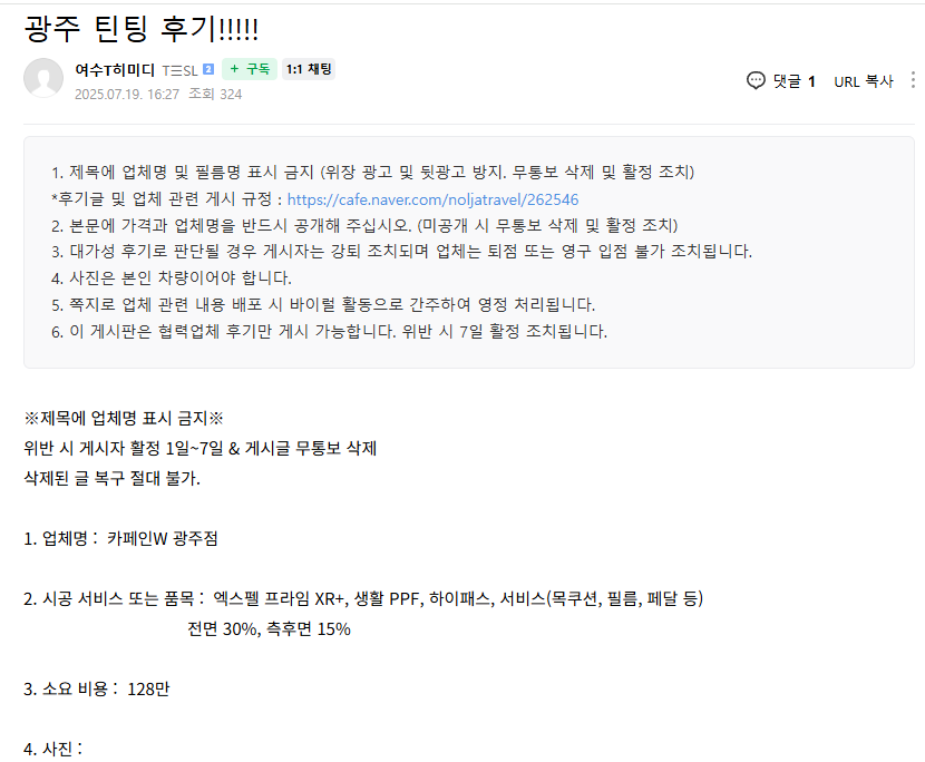 광주 틴팅 후기!!!!!!!