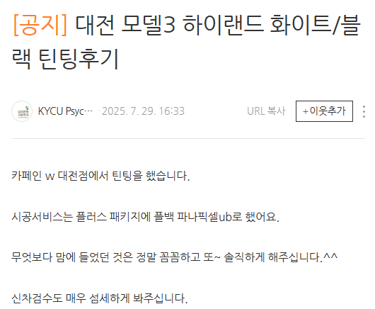 대전 모델3 하이랜드 화이트/블랙 틴팅후기
