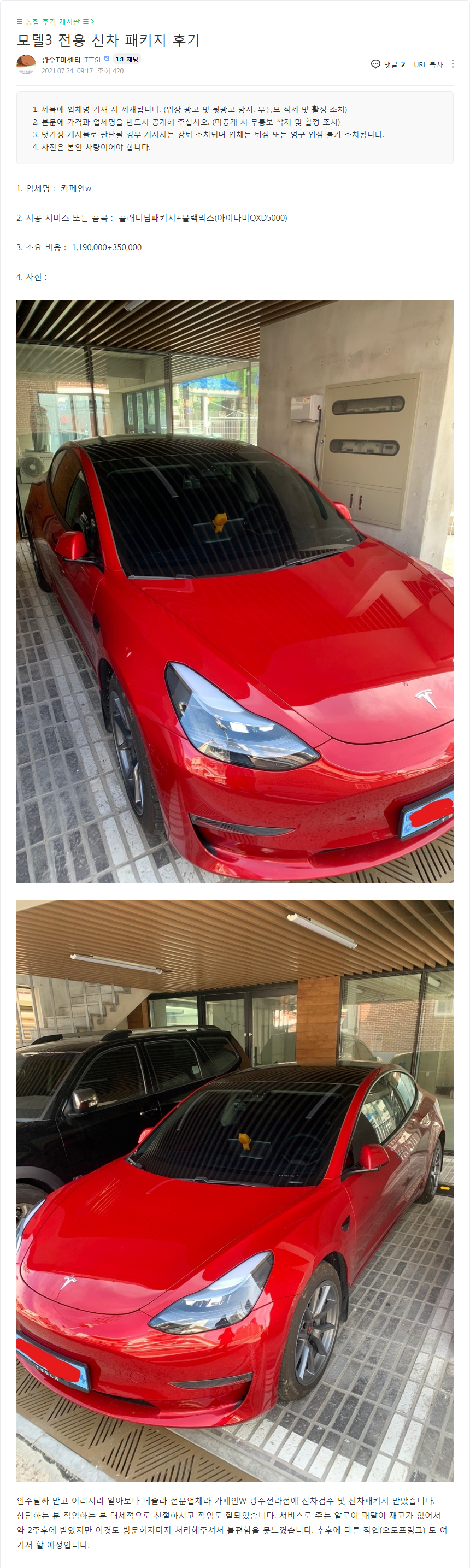 모델3 전용 신차 패키지 후기