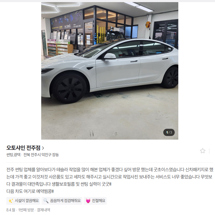 대전 테슬라 모델3 하이랜드 틴팅 후기