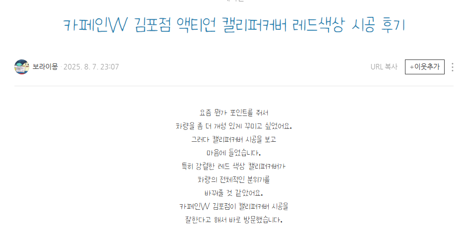 카페인W 김포점 액티언 캘리퍼커버 레드색상 시공 후기