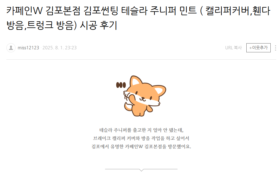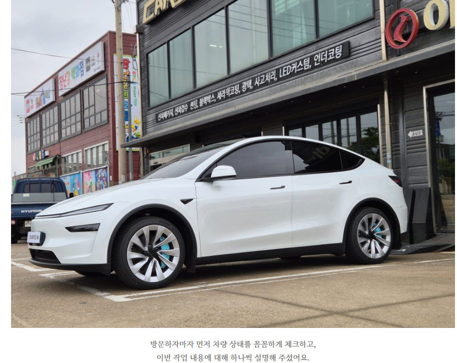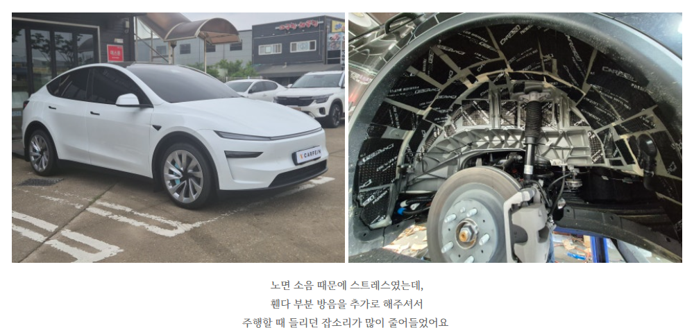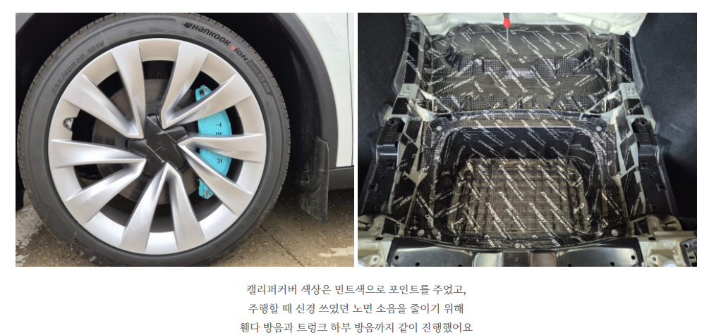 카페인W 김포본점 김포썬팅 테슬라 주니퍼 민트 ( 캘리퍼커버,휀다방음,트렁크 방음) 시공 후기