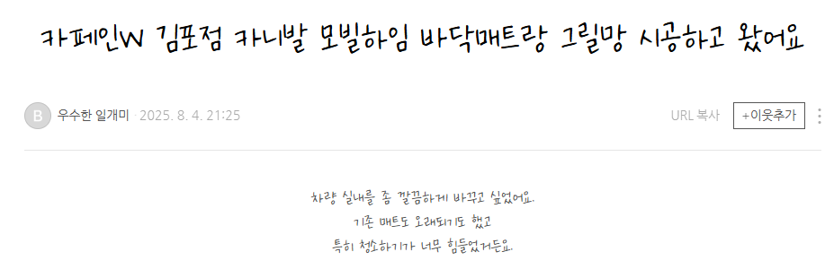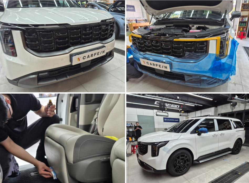 카페인W 김포점 카니발 모빌하임 바닥매트랑 그릴망 시공하고 왔어요