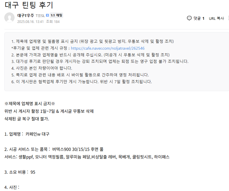 대구 틴팅 후기