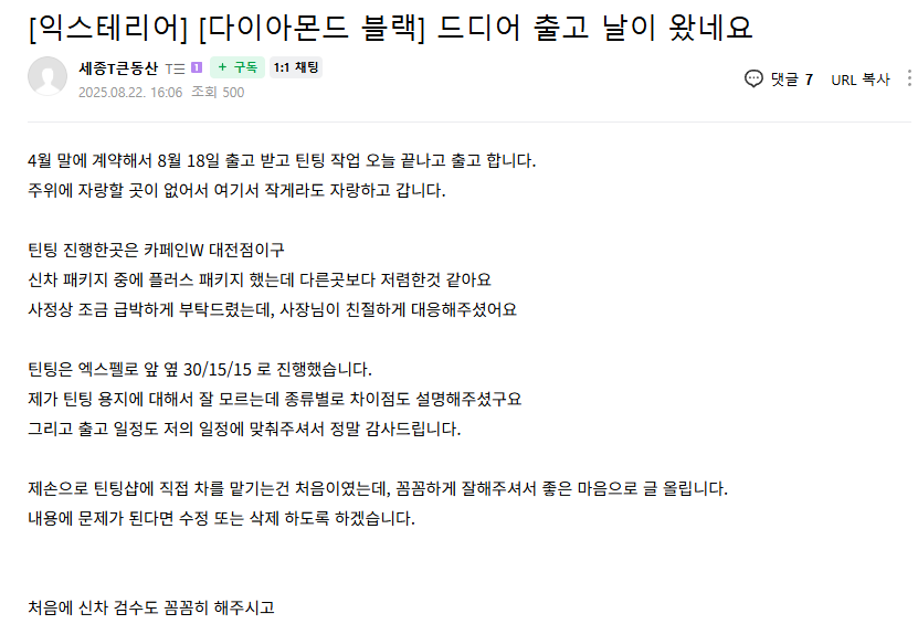 [익스테리어] [다이아몬드 블랙] 드디어 출고 날이 왔네요