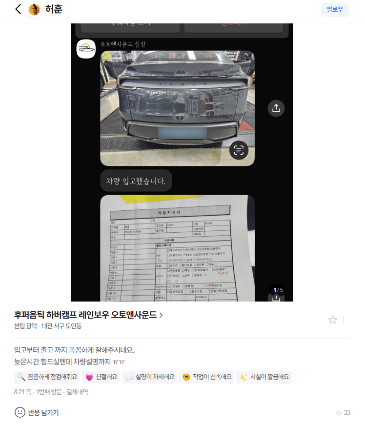 테슬라 다블화 시공 후기!!