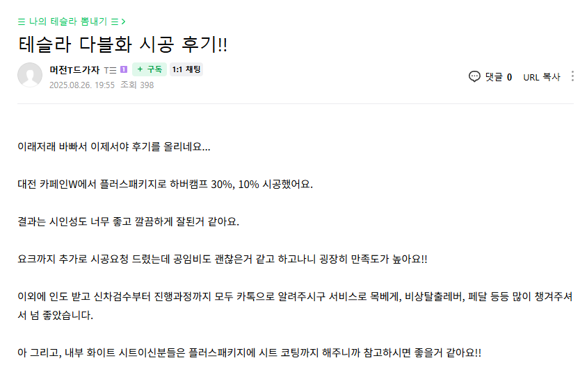 테슬라 다블화 시공 후기!!