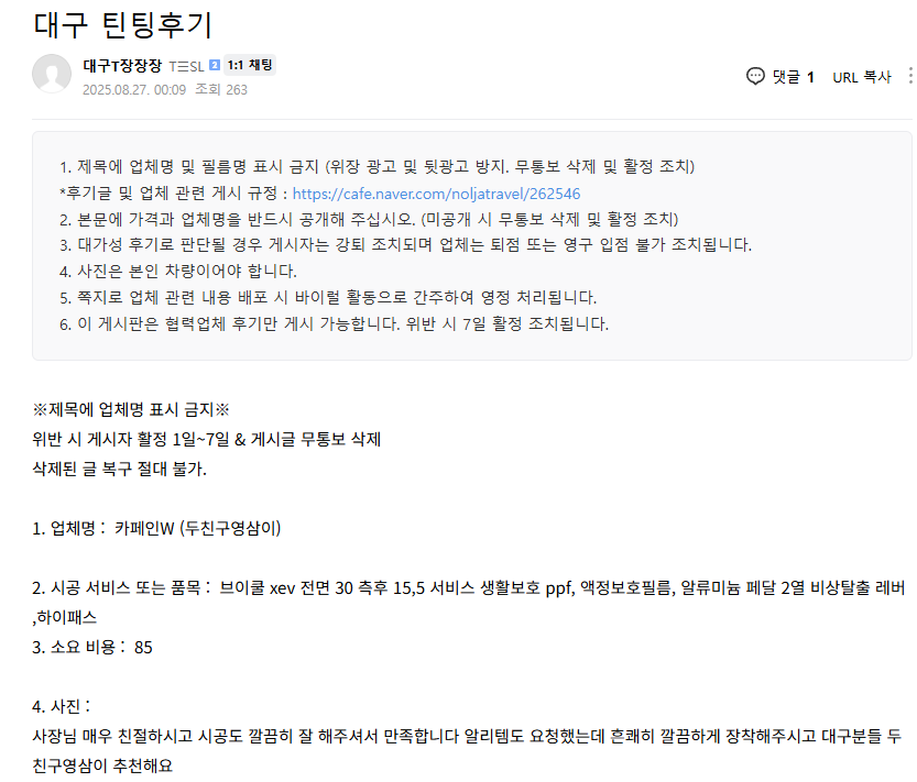 네이버 플레이스 리뷰 - 카페인W 전주점