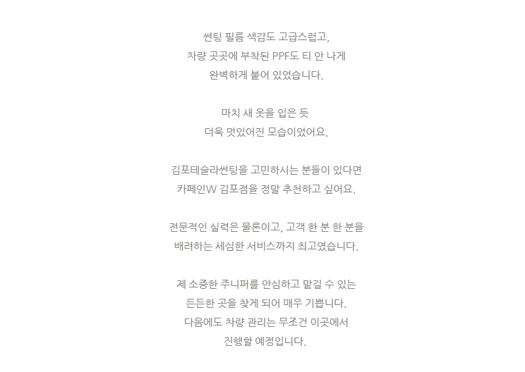 카페인W 김포본점 김포썬팅 주니퍼 차량 틴팅 + PPF 시공 후기